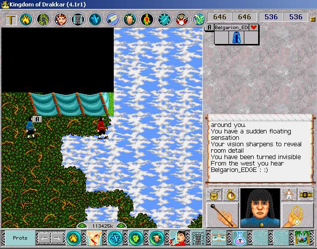 I was casting Prots in the leafy place called Tree Town on unsuspecting crits passing by (by the way don't cast AH on barbs, it tends to tick them off). I cast all the different ones I had and then Belgarion hit me with his. Beats me. hehe