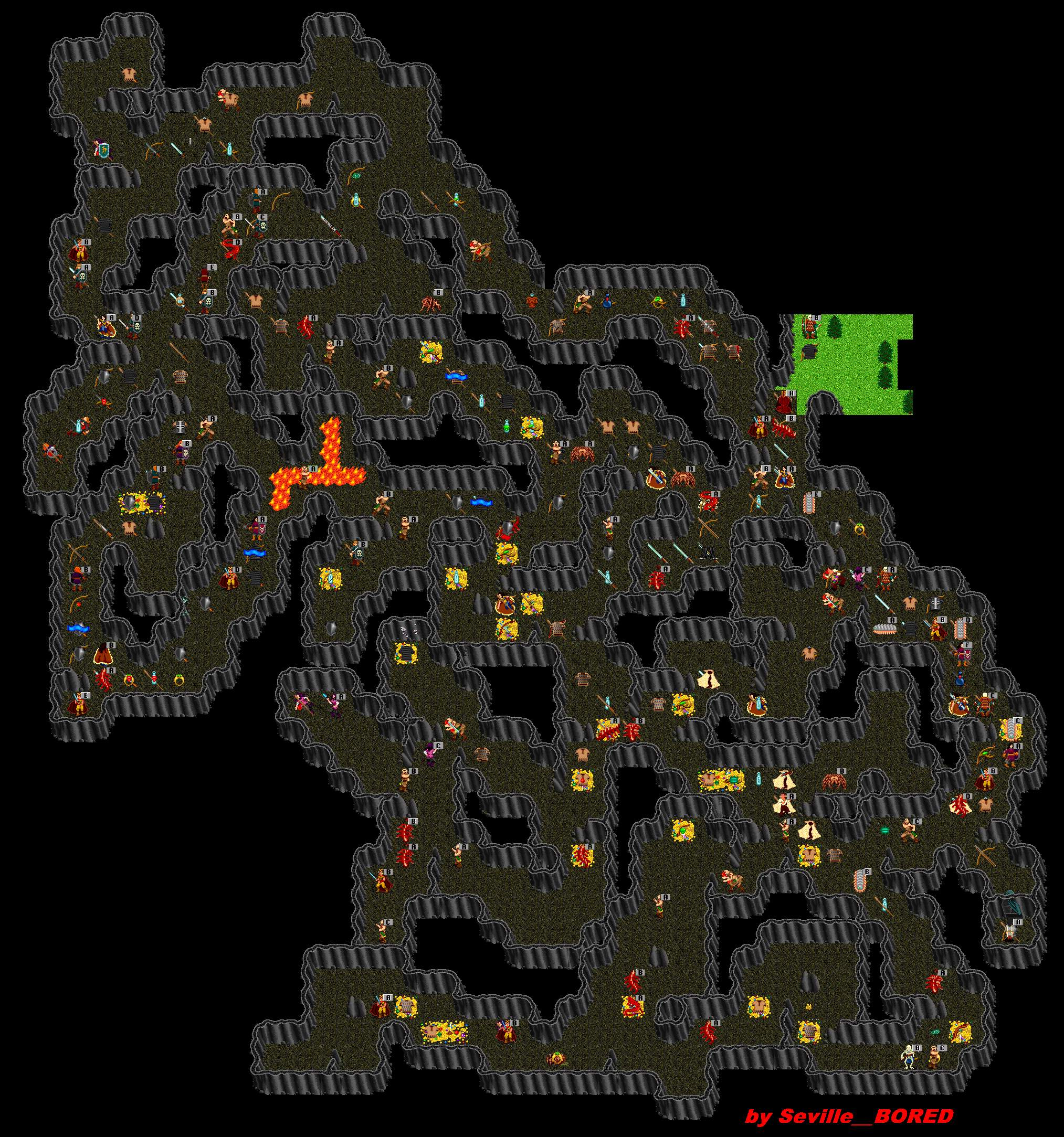 | The Southwest Caves have many threats to deal with. Skeletons with Lightning Spears and casting darkness, flaming Salamanders, stunning staff NPC's and poisonous crits too. Centipedes have been known to drop Grubs in here, Trade Grubs for a +1 EP Potion. |