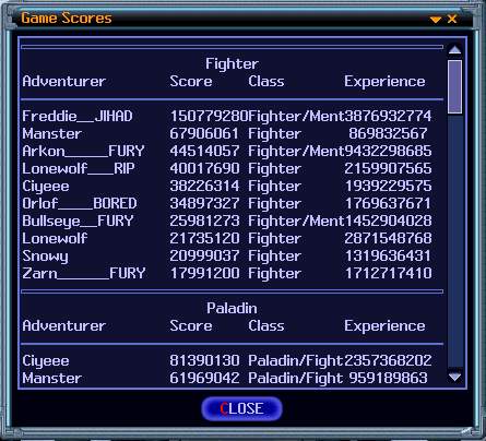 | I am in 4th place. Not too shabby. Don't die or you will get bumped off the list. Dieing loses a lot of score. But I am not the only BORED member to make the list. |