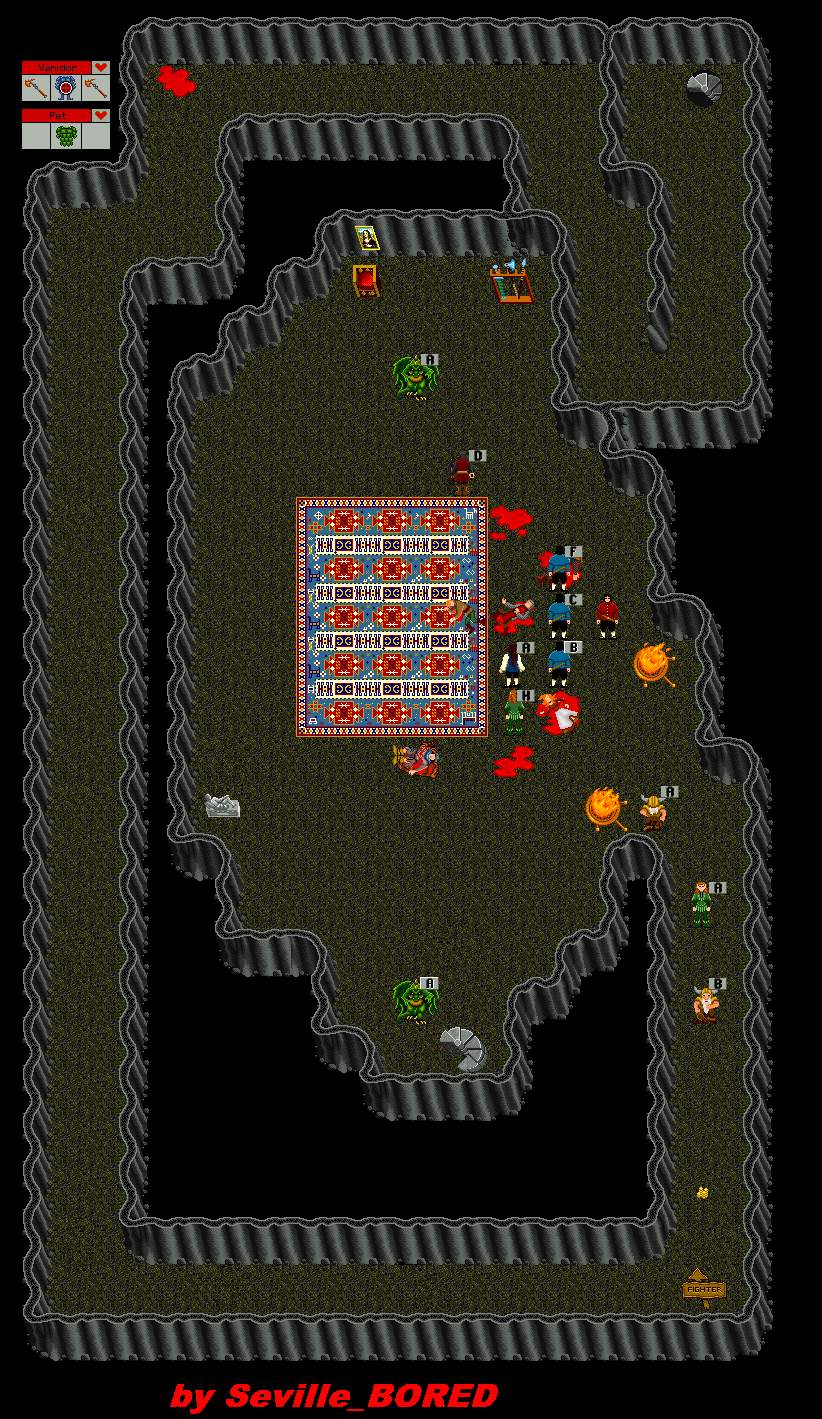 Vanidor would welcome you to his lair by shaking hands but his hands are full with 2 Pets and 2 Axes. Axes are +5. Best tactic is to draw off and kill each Pet in turn, then take on Vanidor directly. A very fun Lair. This cave leads down the stairs to Vanidor. Useful as a staging area. Taking the stairs Northeast of the Lair will take you to Undead City -5. |