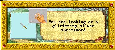 Silver Short Sword Rare Silver shortsword found in aleria, This weapon ties upon contact. Very valuable, I have been offer 10megs for one. Good luck finding one though. |