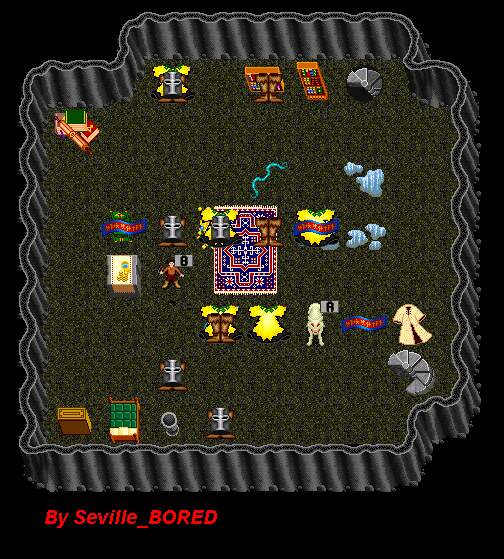 Thanks to Seville's Page for the map Not a hard fight, he uses an espear bow and can stun you if he hits you right, wear some psi cutting gear and you should be fine. He drops a robe with adds 4 or 5, and if you are lucky he drops a set of 2/2 bracers, as well as a 4/4 sash. Woof is just there to annoy you or poison you. His lair is located in the far east of T-2.