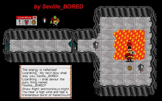 Thanks to Seville's Page Talk to Sir Haldan and he will send you to Lady Annalie who also roams around Nork Island. She will tell you of how the Lizard King torments her and her family. Sir Haldan failed in his task to rid her of the fearsome beast. Lady Annalie challenges you to kill the flaming Lizard and retrieve a figurine of her father. If you are successful, you will recieve a +1 on your Constitution for your troubles. |