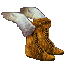 A pair of tan boots with white winglets embedded in a fur collar. |