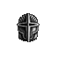 A huge helm made from an exotic metal with interlocking plates at the sides and back |