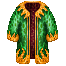 A robe of many colors with gold clasps on the front. |