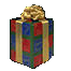 Gift | A box tied up with a large, gold ribbon. | - | From christmas event |