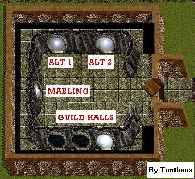 ALT1 will be glowing if you are on ALT2 and ALT2 will be glowing if you are on ALT1. In other words I'm only showing you both glowing at the same time for picture purposes. Left portal goes to Maeling Town and lower portal goes to Lower Guild Hall. |