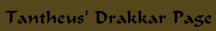 Most information gathered on this site was taken from the Referenced Fan site links and Drakkar forums. I wanted to create a one stop web site for Kingdom of Drakkar information. I found many dead links when researching information on Kingdom of Drakkar and I wanted to preserve the information I found before another site went offline. | Copyright 2004 (Tantheus' Drakkar Page). Site Designed by Tantheus. All Rights Reserved. | | | Official Site |  | | Tantheus Update : 7/18/04 | - Exp Level : 1 - Mentalist Skill Level : 10 - Staff Skill Level : 7 - HPs : 188 - EPs : 34 | |
